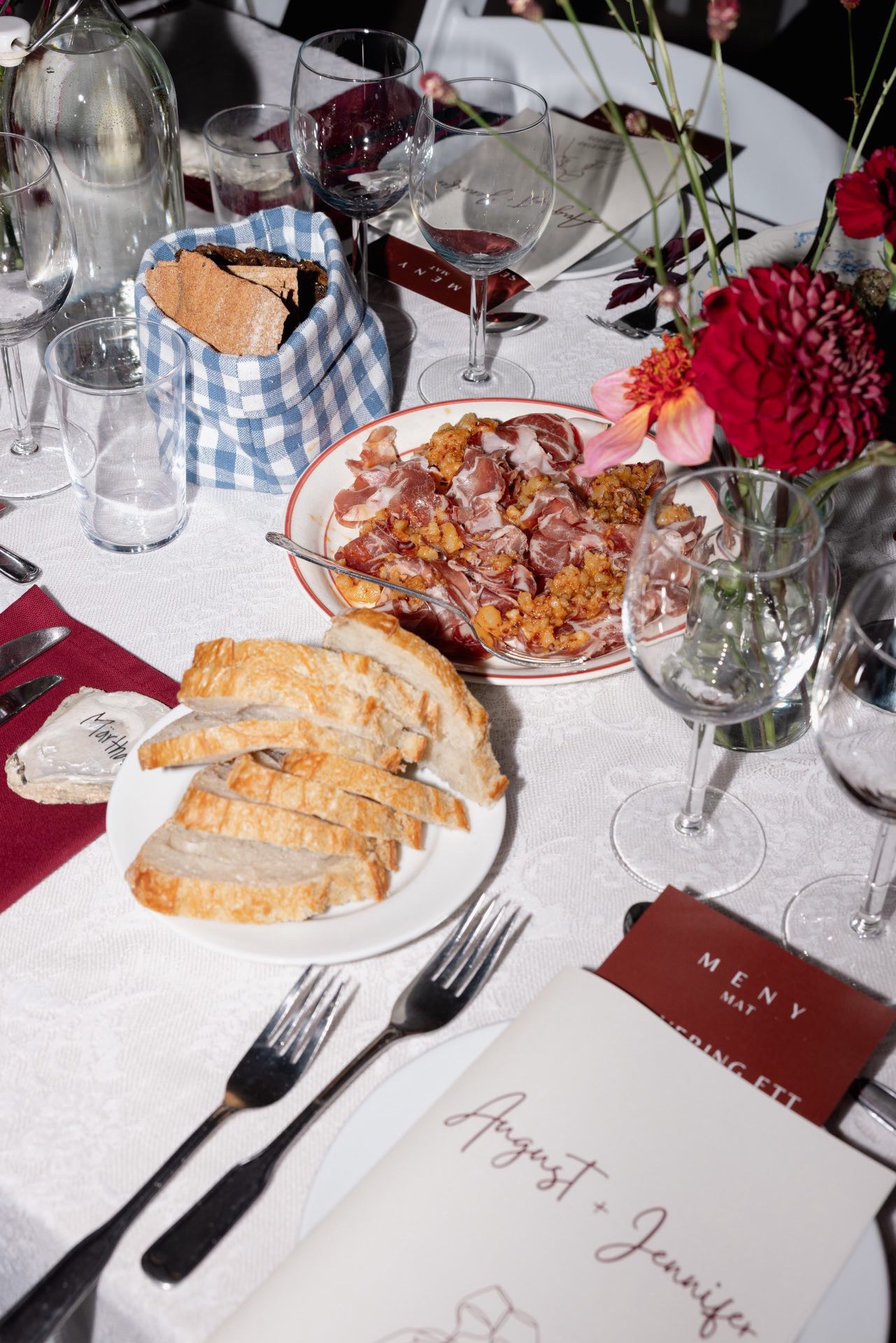 Maten är en viktig del i ett bröllop, både hur den smakar, ser ut, serveras och matchar allt annat. Vi har valt att jobba med sharing eftersom vi tycker det har så många fördelar. Middagen blir längre, det är socialt samt att man får njuta av många fler olika saker. Tillsammans skapar vi en meny utefter era preferenser, säsong, lokalen och vår filosofi.