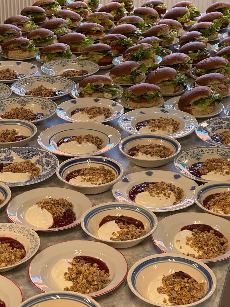 Vi gör frukost i olika utföranden, allt från en enklare macka till bordsserverad frukost/brunch, till företag och privat. På bilden ser du exempel på hur en del av ett frukostevent kan se ut. Vi jobbar också med återkommande frukostlösningar mot företag.